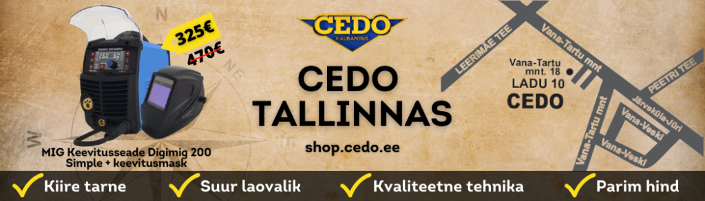 Pakume parima hinna ja kvaliteedi suhtega tööriistu, keevitusseadmeid ja palju muud. Tutvu meie tootevalikuga Cedo Kaubanduse kauplustes või e-poes.